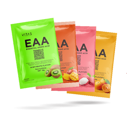 ESSENTIAL AMINO ACIDS(必須アミノ酸)の略で 体内で生成できず、食事やサプリメントなどから接種 する必要がある9種類の必須アミノ酸です。